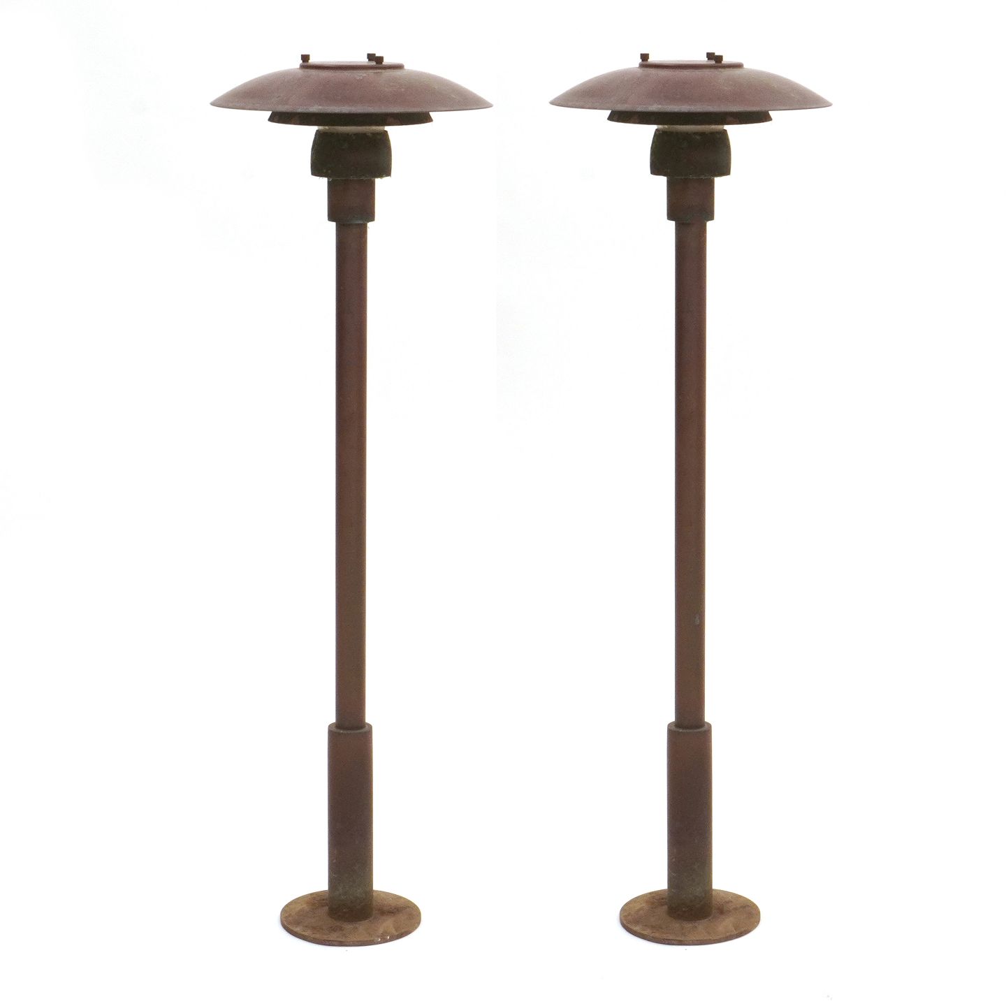Pair of Poul Henningsen PH 3/2,5 copper garden lamps H: 90cm Item number: 558