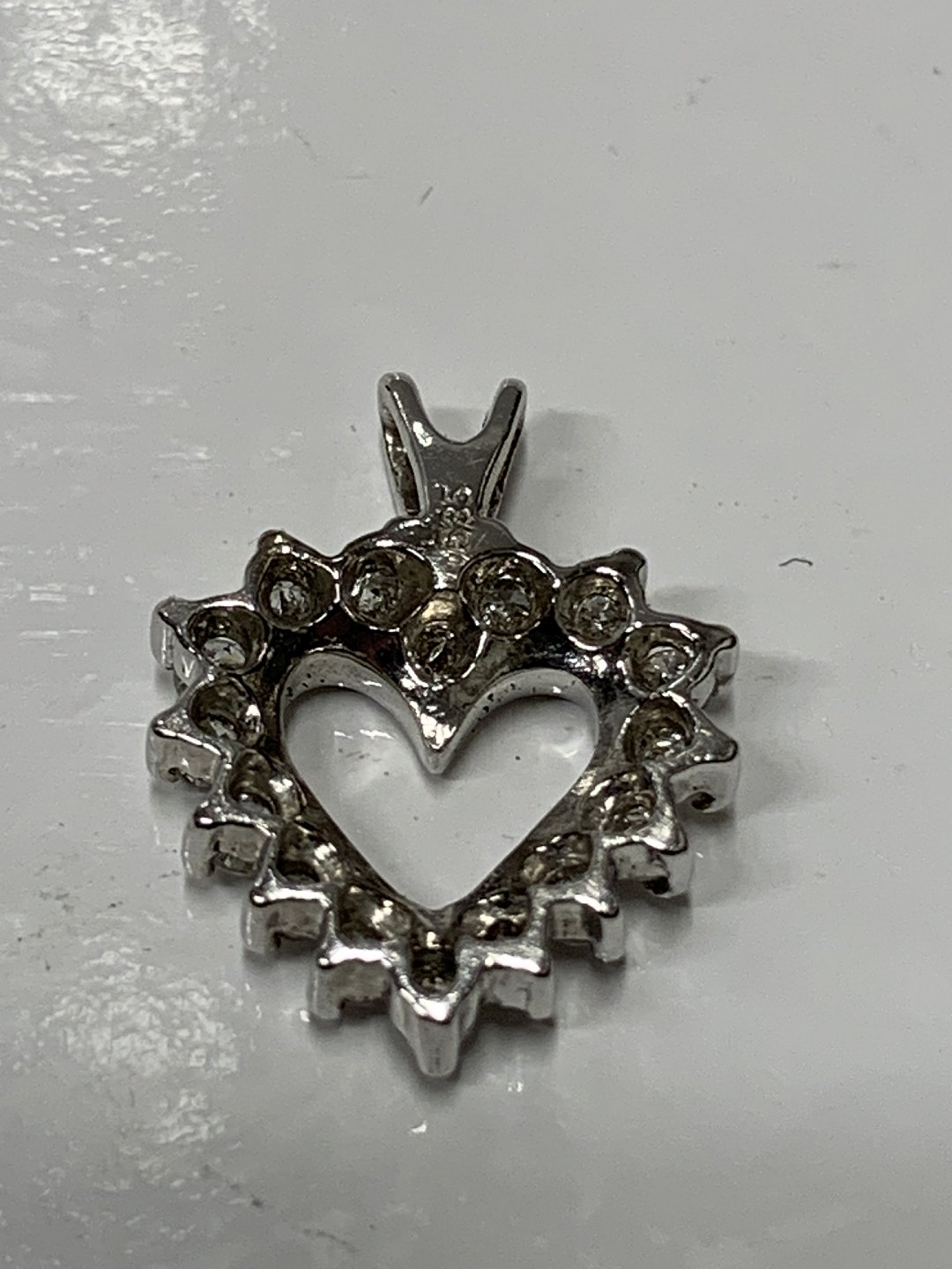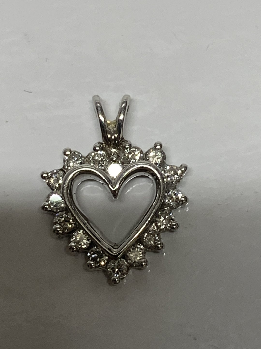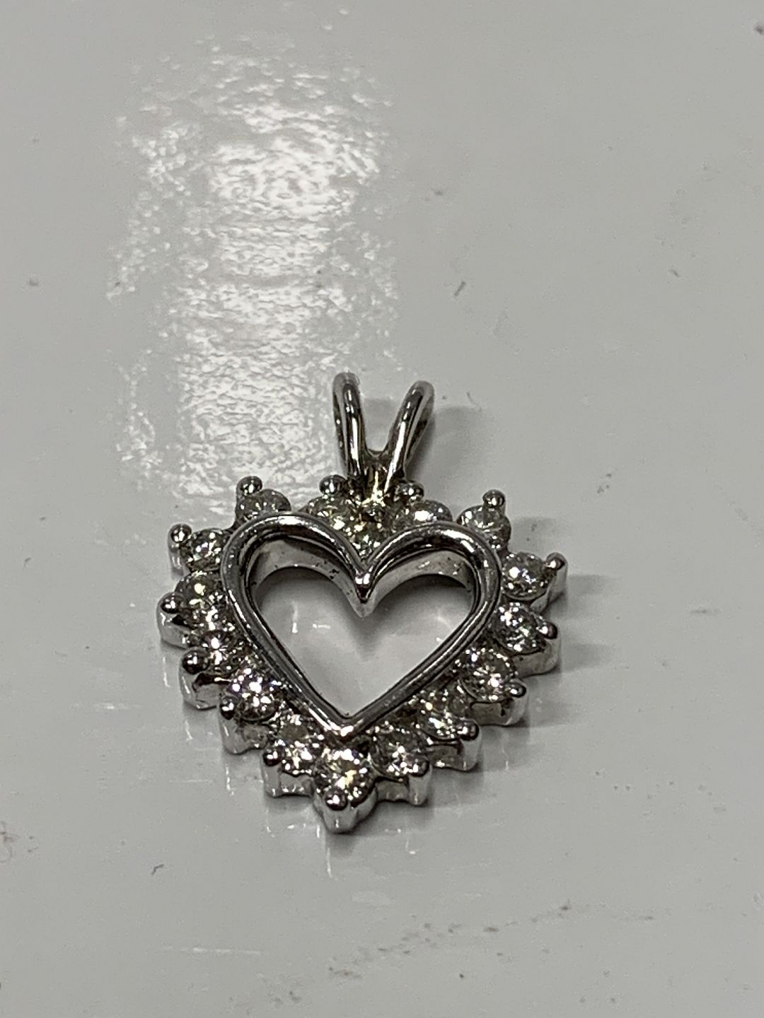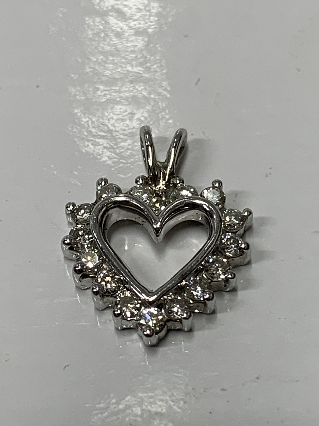 Flot vedhæng, udformet som Hjerte med indlagt Diamanter, i 14 karat hvidguld. Velegnet til halskæde, eller som vedhæng i armbånd.