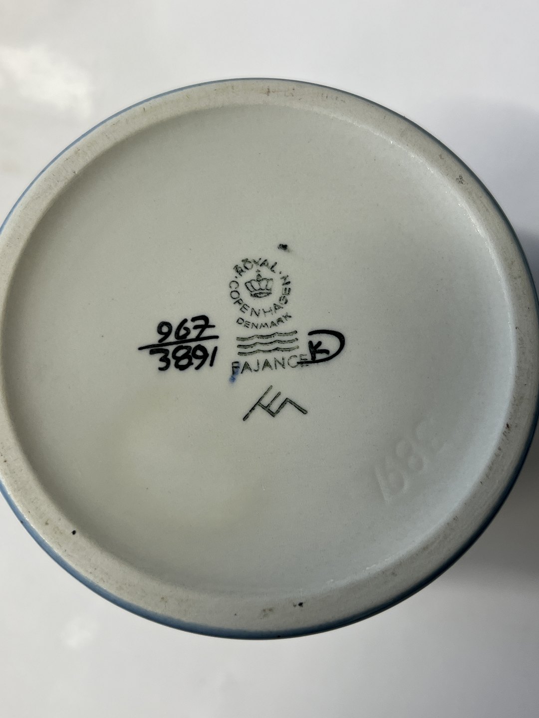 Royal Copenhagen Faience Celeste, vase. Designed and signed by Ellen Malmer. Decoration number 967-3891 Height 11.5 cm. 1st Sort Beautiful and well maintained