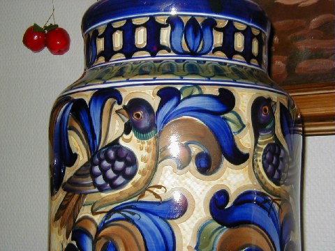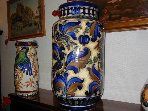 Aluminia Royal Copenhagen Floor Vase, decoration number 1211/350. It is very large, measures 47 cm. in height. Very beatifully decorated. It is in perfect condition.