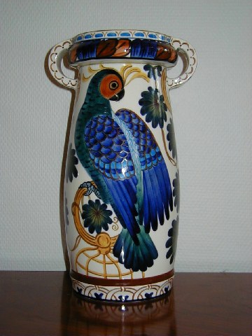 Stor Aluminia vase med Papegøje-motiv SOLGT