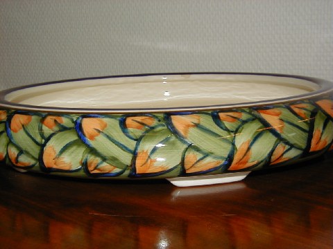 Stort Aluminia Fad, rigt dekoreret, let hævet på fem fødder, nummer 1288/1235, diameter 30,5 cm. Meget flot stand.