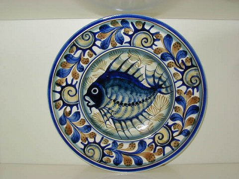 Stor Aluminia Platte dekoreret med fiskemotiv SOLG