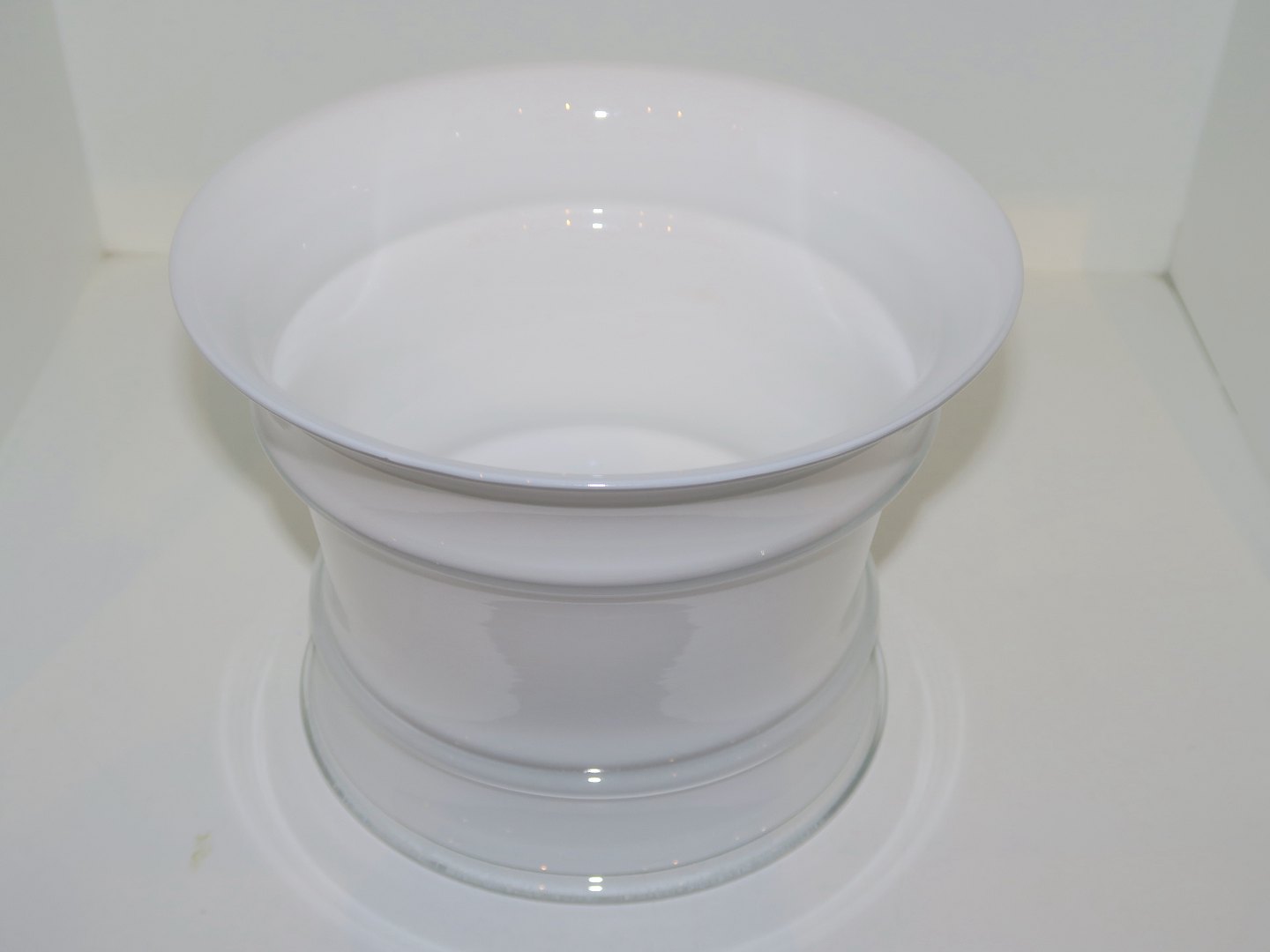 Holmegaard, MB urtepotteskjuler - stor model. Hvidt opalglas. Designet af Michael Bang i 1981. Diameter 17,5 cm., højde 13,1 cm. Perfekt stand.