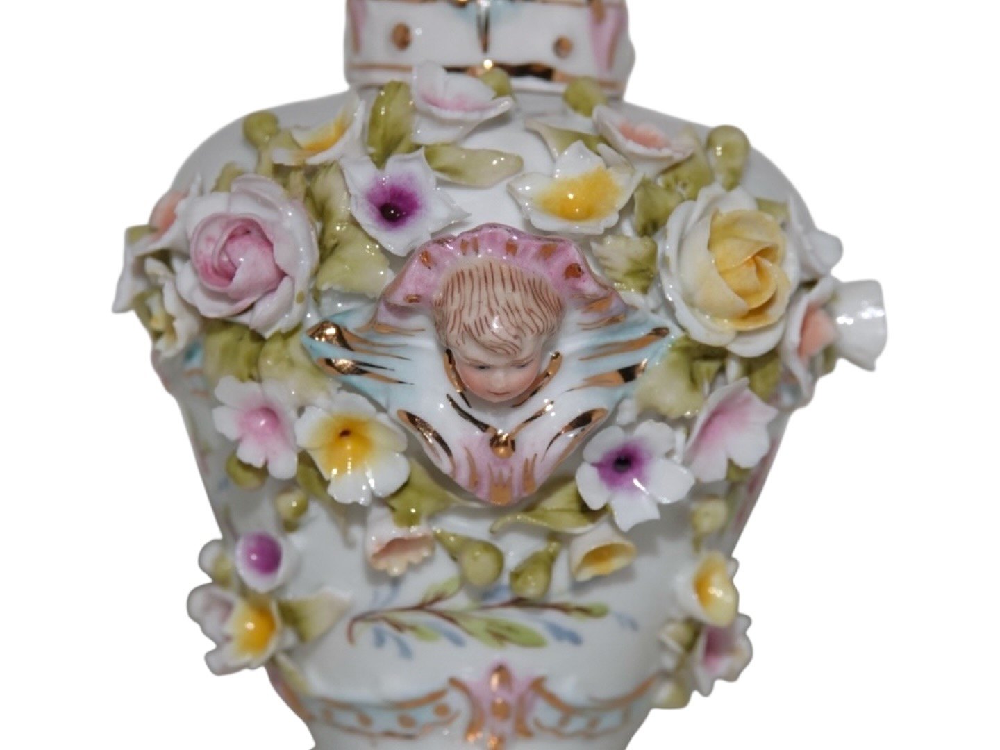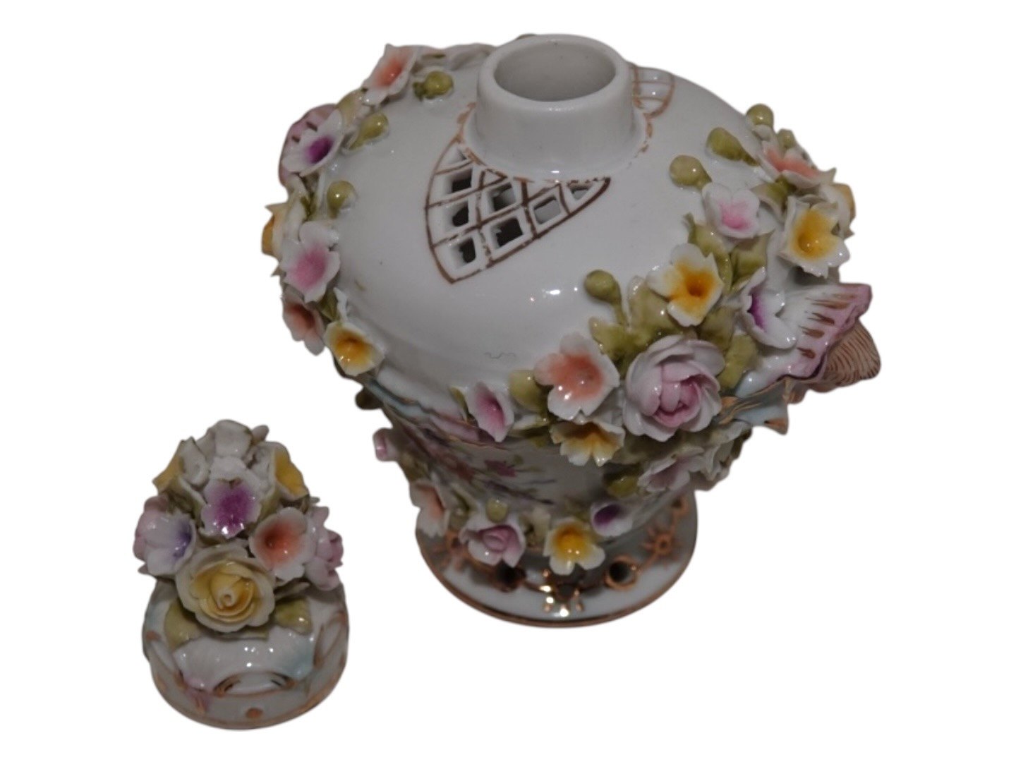 Porcelain from Germany, small lidded bottle with many flowers.