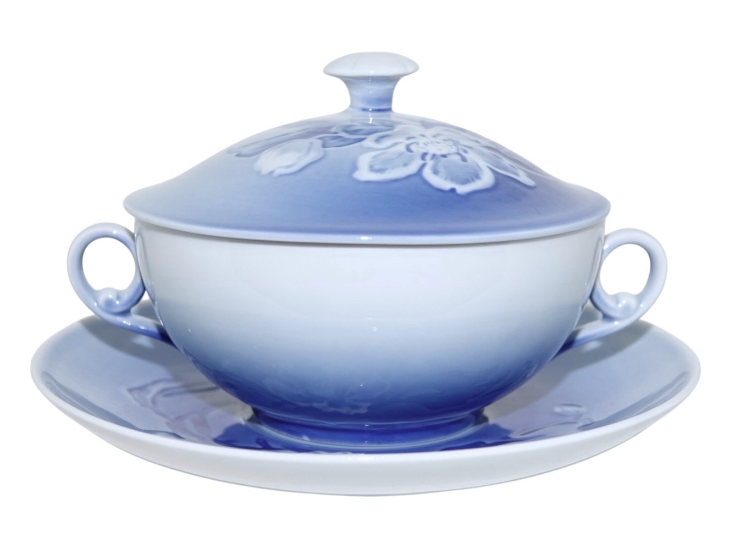 Bing & Grøndahl Julerose, boullionkop med tilhørende låg og underkop.