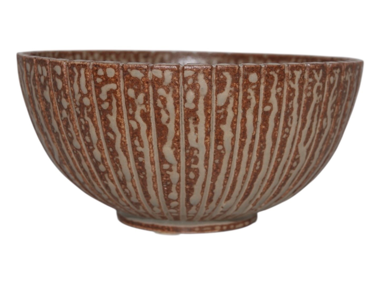 Arne Bang keramik, skål med riller og en flot glasur. Designnummer 123. Diameter 18,8 cm., højde 9,2 cm. Perfekt stand.