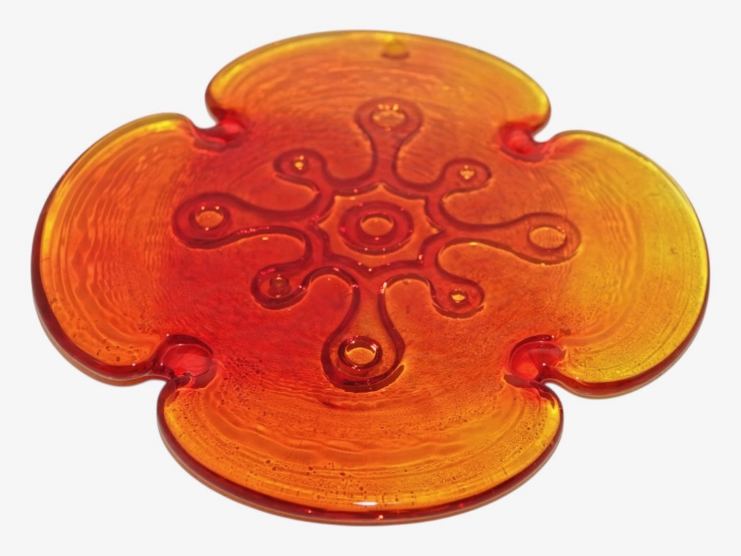 Holmegaard, orangerød solfanger i form af firkløver fra 1970'erne.