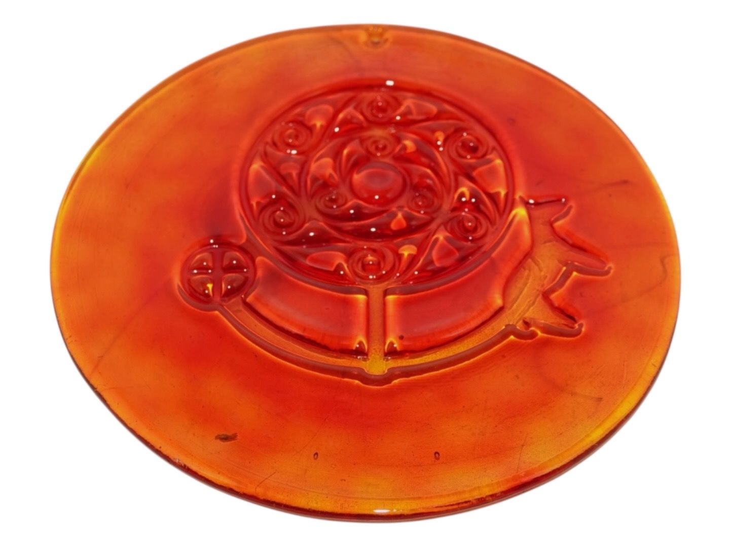 Holmegaard, stor orangerød solfanger fra 1970'erne.
