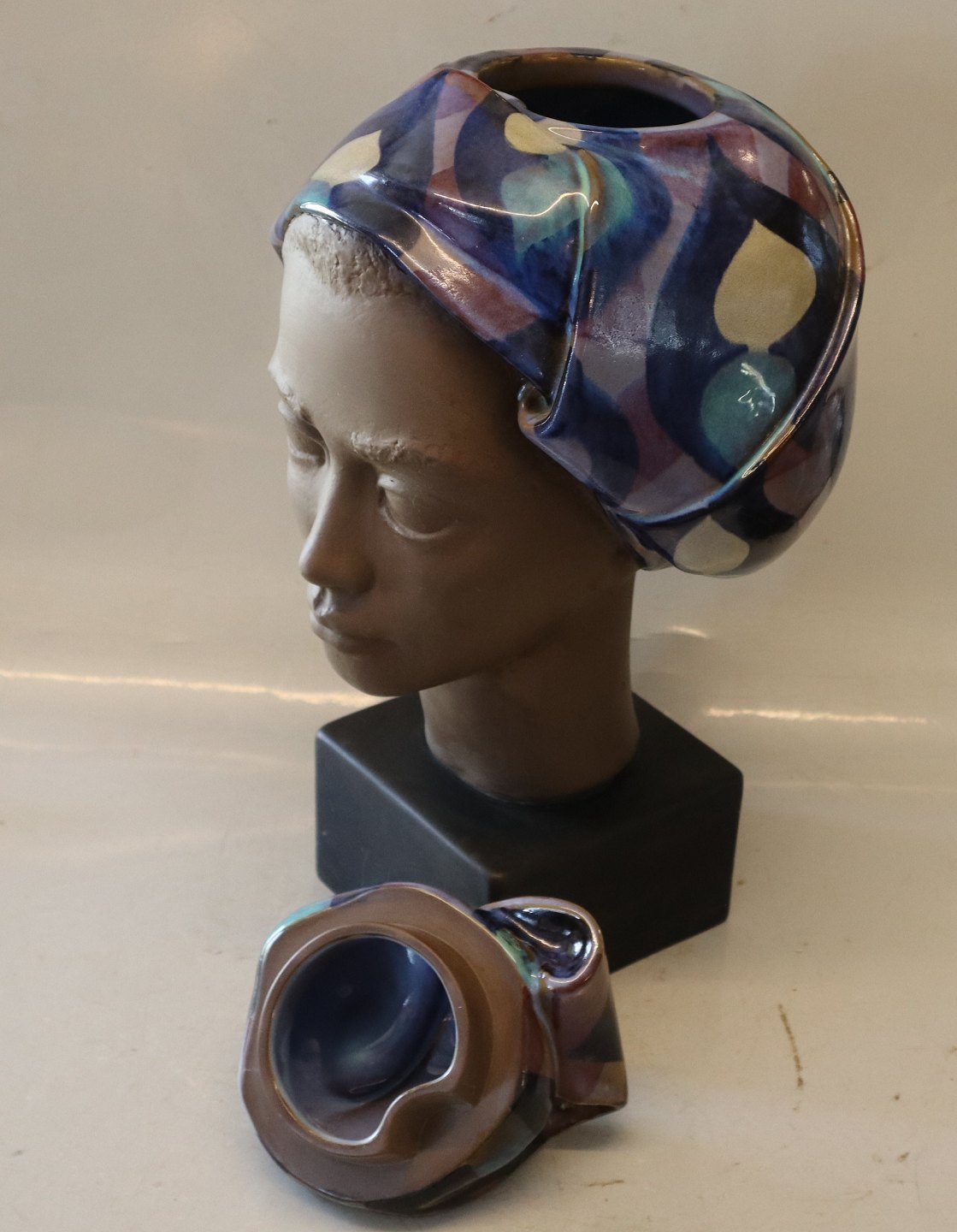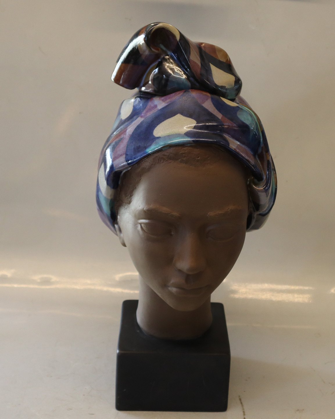 Royal Copenhagen stentøj 3139-250 Aluminia Kvinde hoved med låg 43 cm Margrethe? I fin og hel stand Aldersrelaterede brugsspor