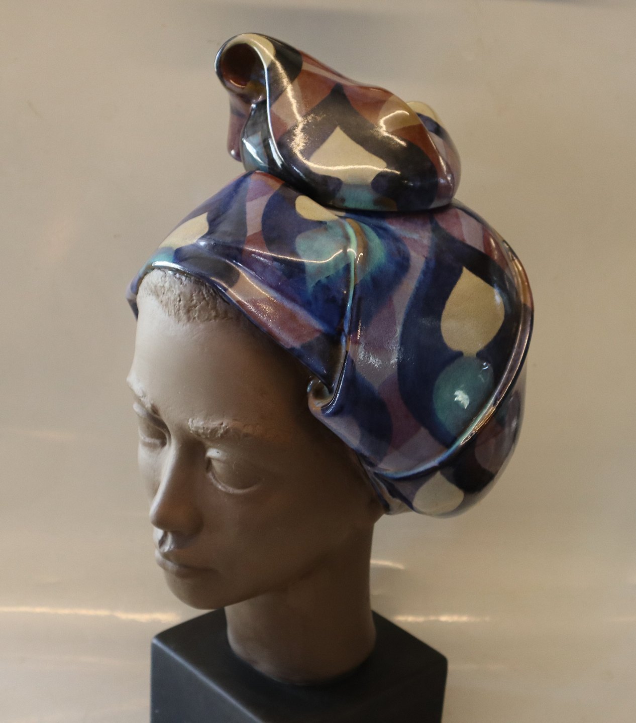 Kongelig Dansk Stentøj 3139-250 Aluminia Kvinde hoved med låg 43 cm Margrethe