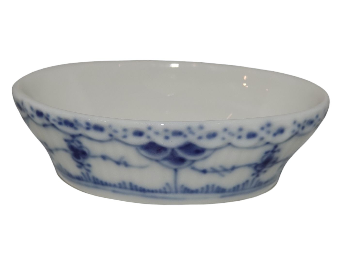 Royal Copenhagen Musselmalet Halvblonde, ovalt saltkar.