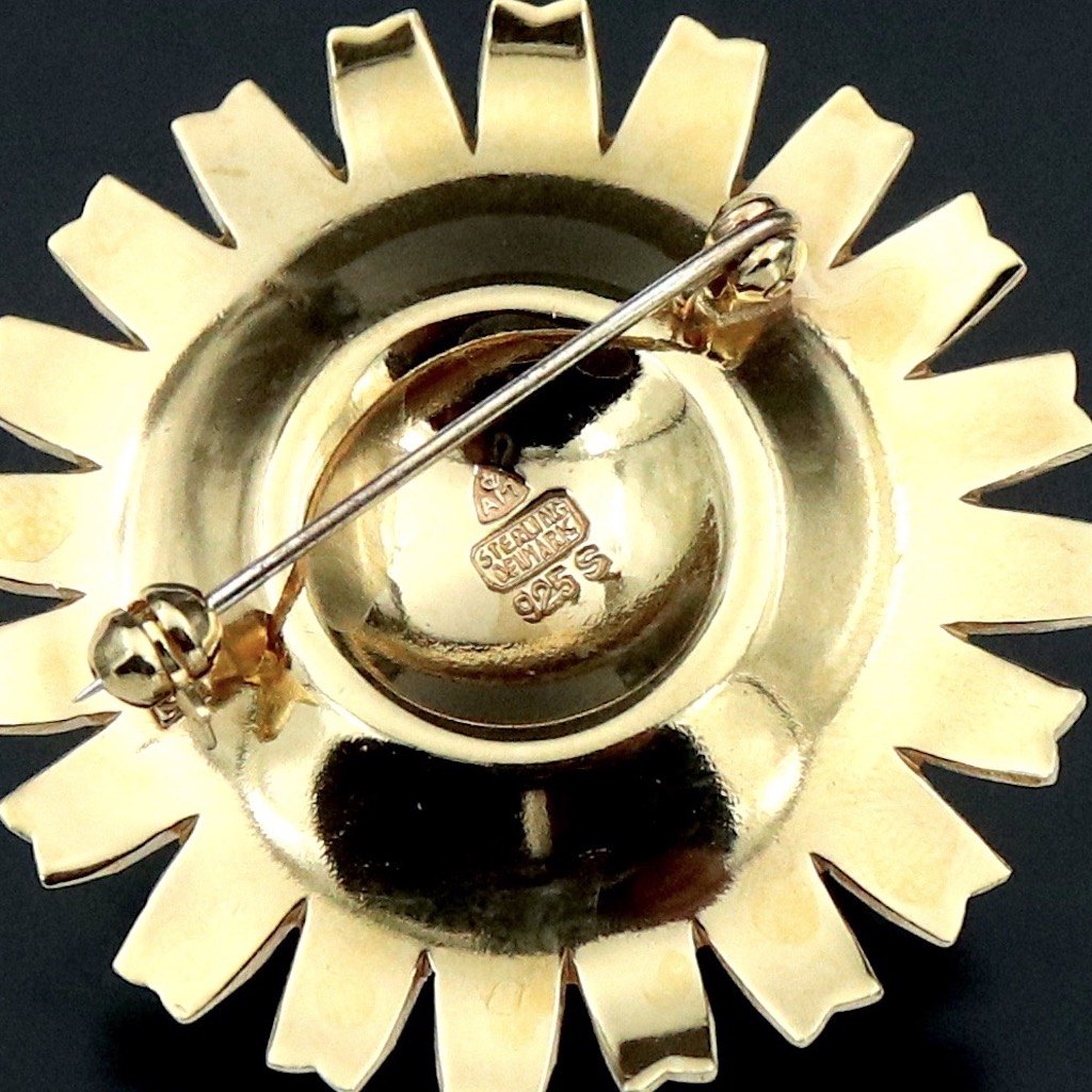 A. Michelsen Marguerit / Daisy Broche i forgyldt sterling sølv med turkis emalje - 43mm.