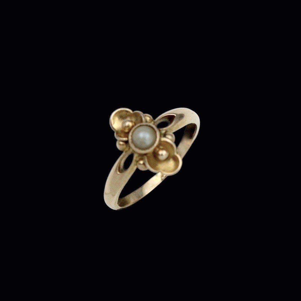 Evald Nielsen 1879 - 1958. Skønvirke ring i 14k guld med perle.
