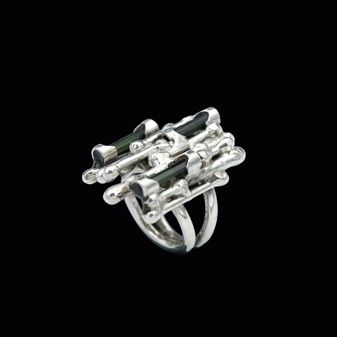 Flemming Knudsen. Ring i sterling sølv med turmalinkvarts.