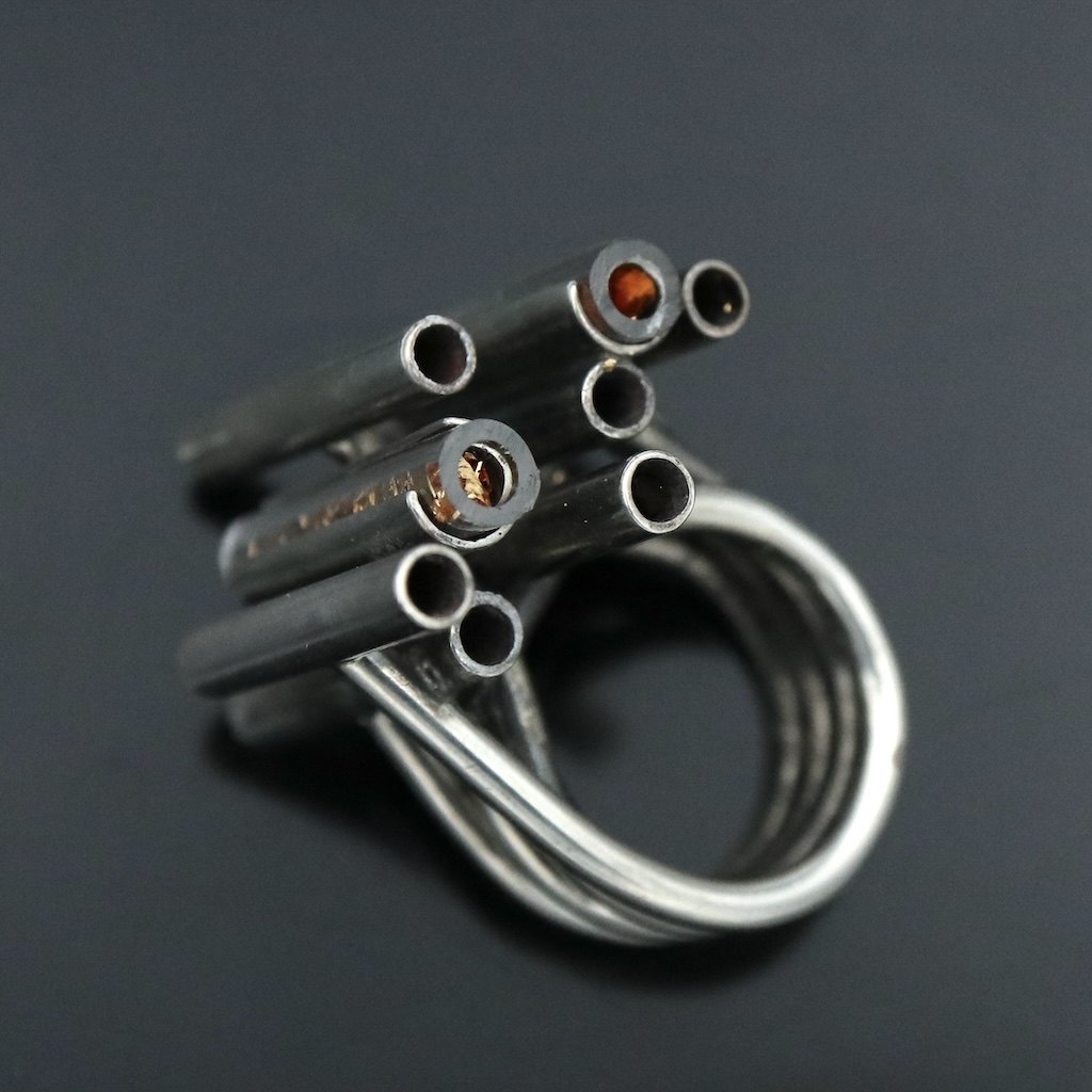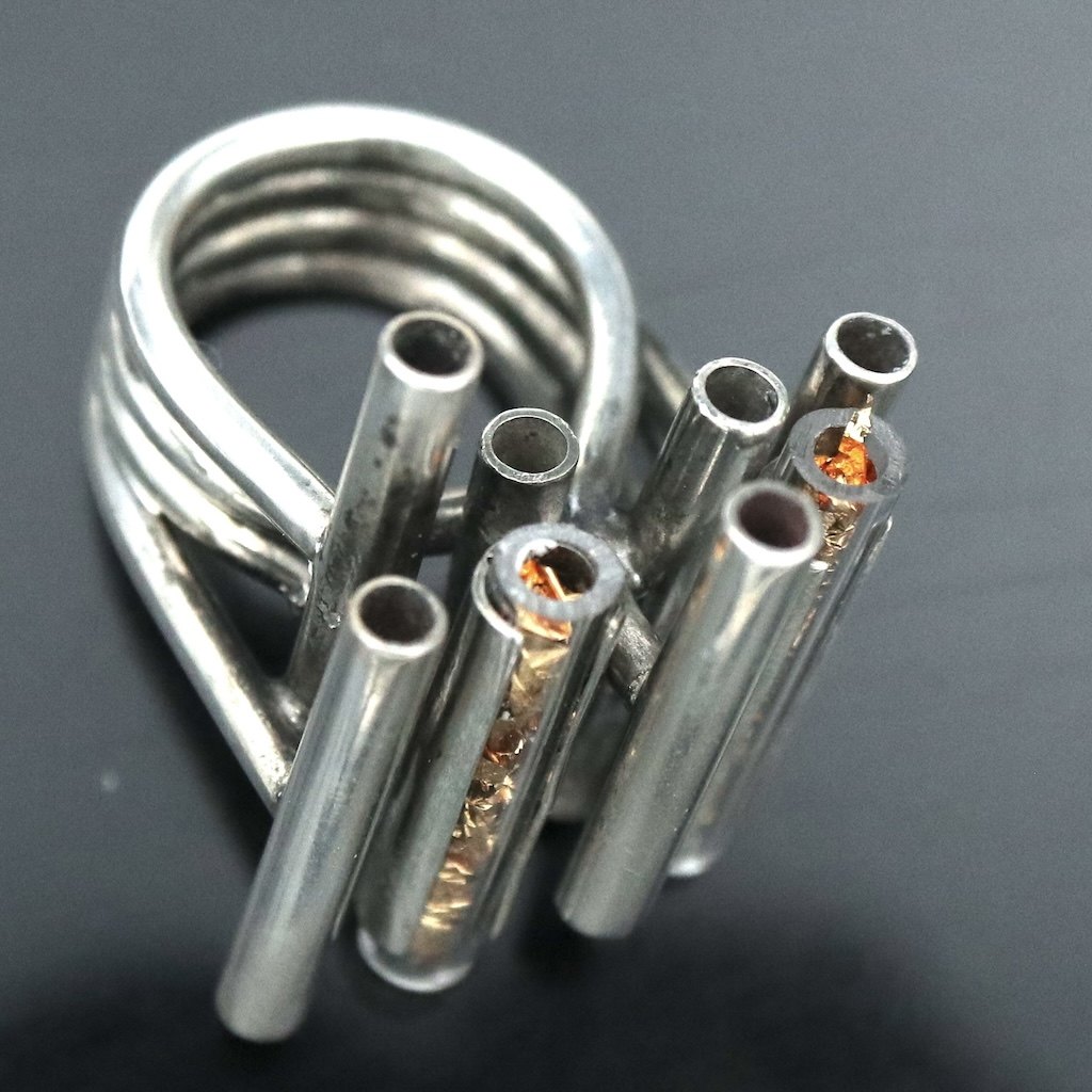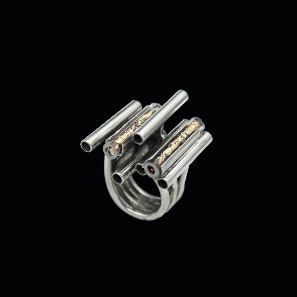 Flemming Knudsen. Ring i sterling sølv med plexi-glas og bladguld.