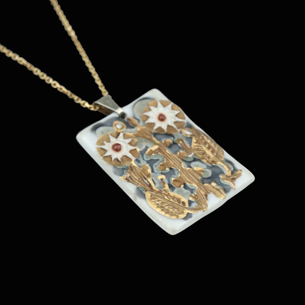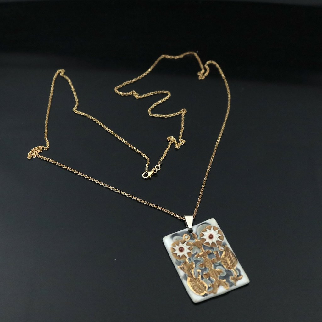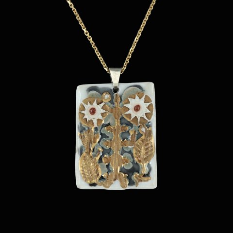 Royal Copenhagen. Vedhæng i porcelæn med sterlingsølv.