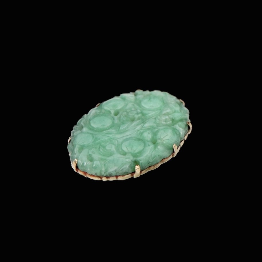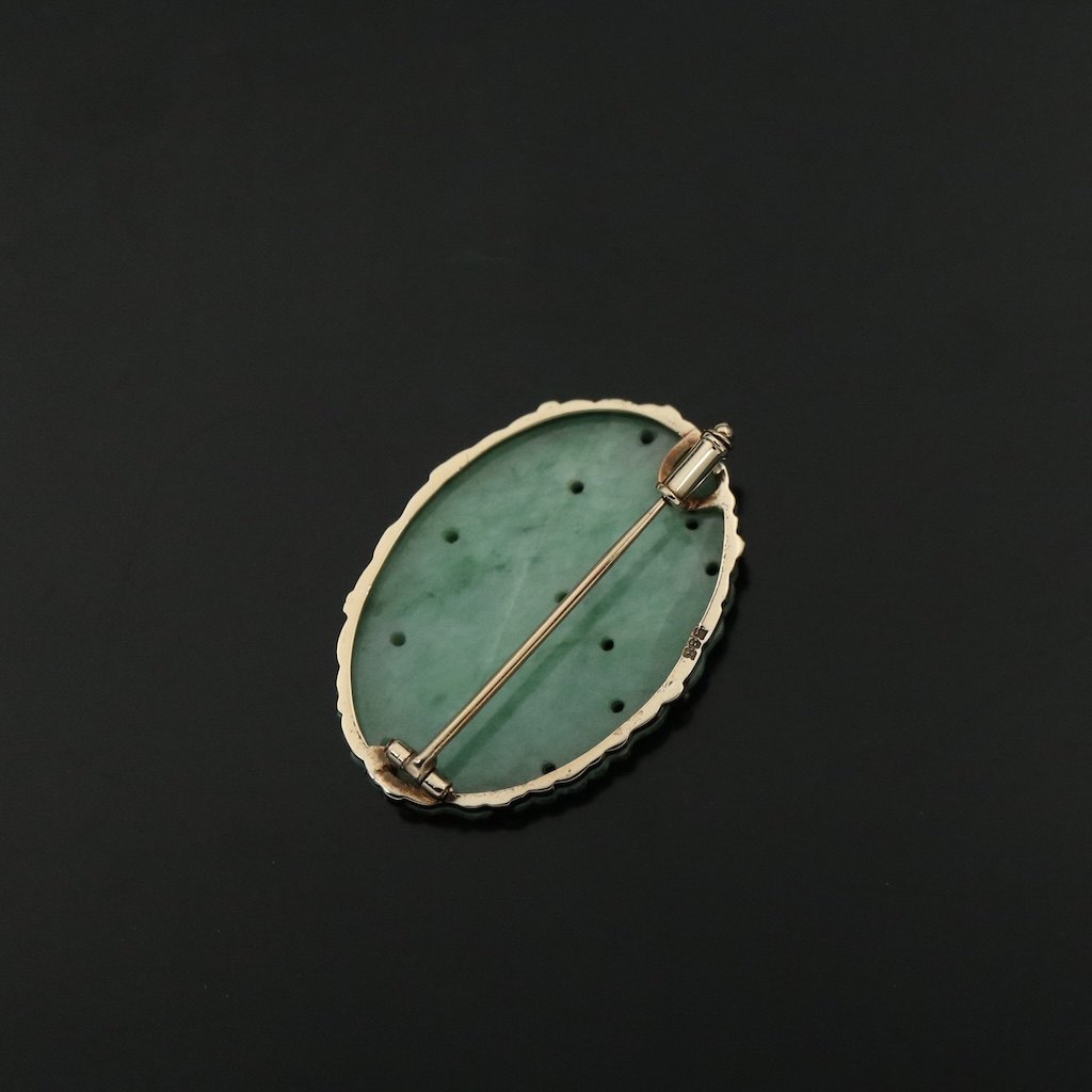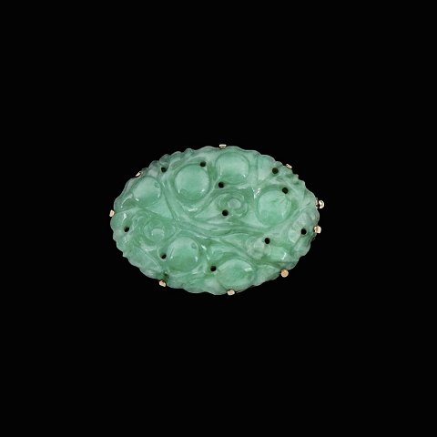 Broche i 14k guld med jade.