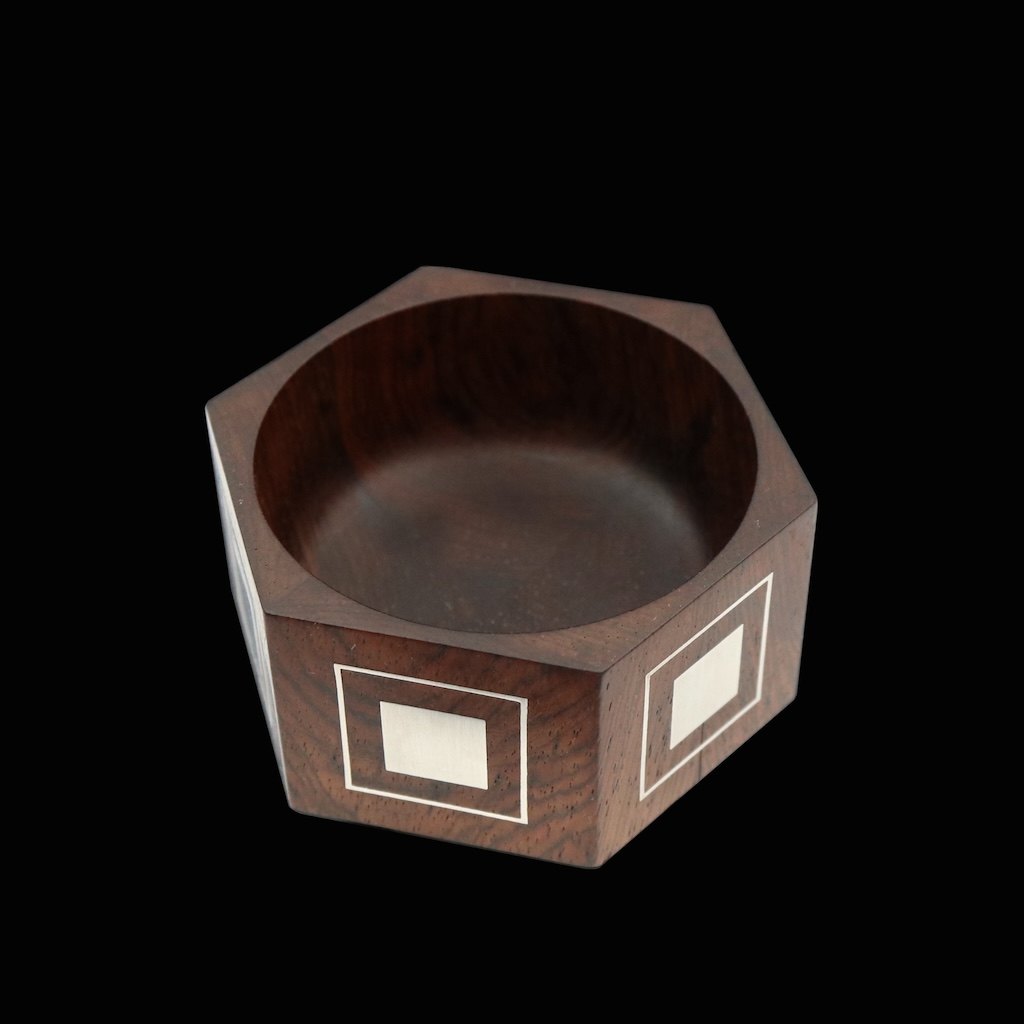 Hans Hansen. LIlle skål i palisander med indlagt sterling sølv.