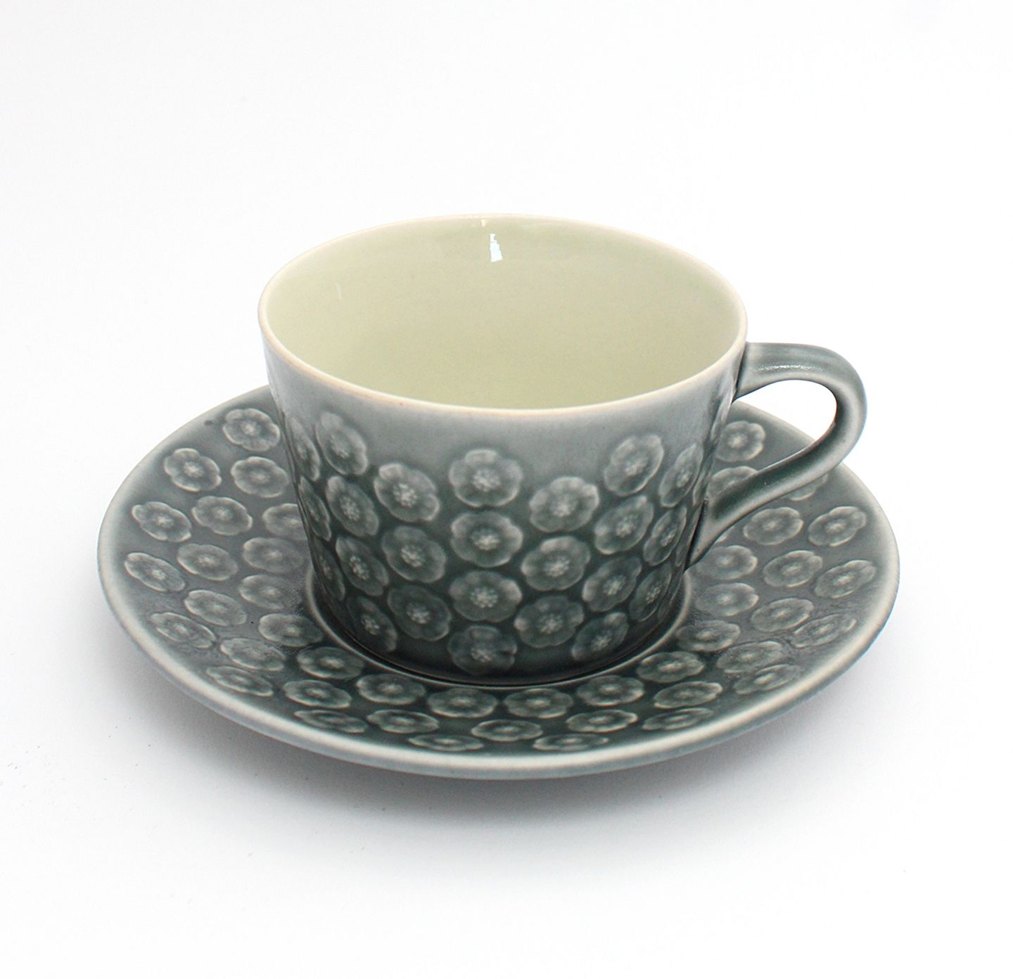 Tekop med underkop. Højde 6 cm. Diameter 8,5 cm. Underkop 15 cm. Flot stand. Pris: 475 kr. stk. Lager: 6