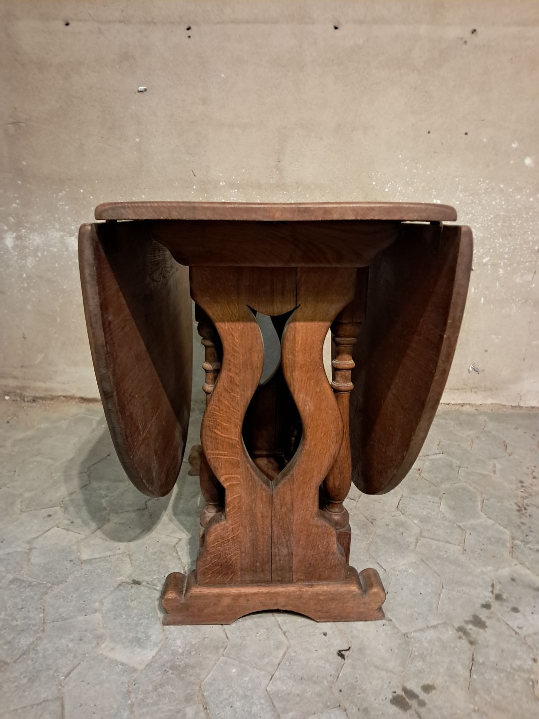 Klapbord i massivt egetræ, fra 1930erne.