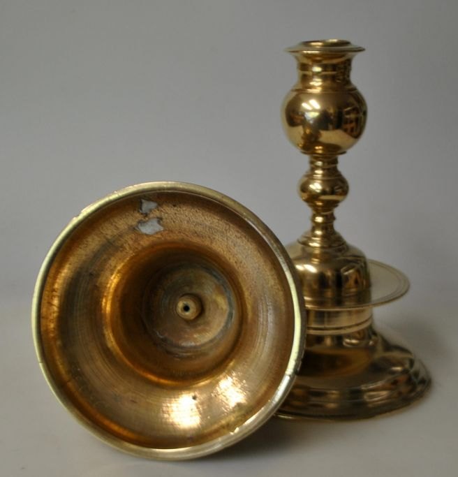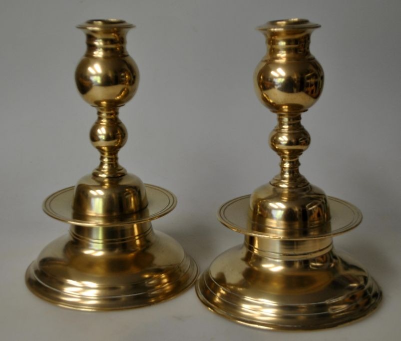 Par kopi barok klokke stager i messing, 20. årh. Danmark. Ustemplet. H.: 16 cm.