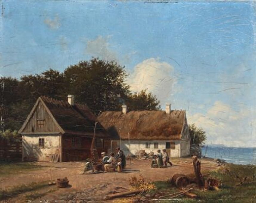 Klein, Peter Gabriel (1824 - 1859) Danmark: Kystparti med bondehus.