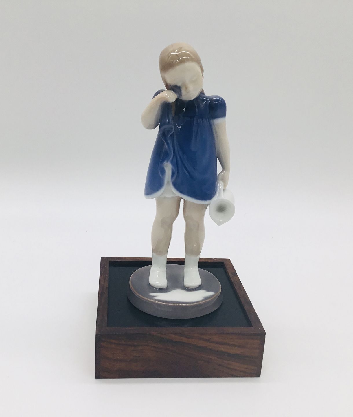 B & G Pige i blå kjole 18 cm Spildt mælk. 1 sort.