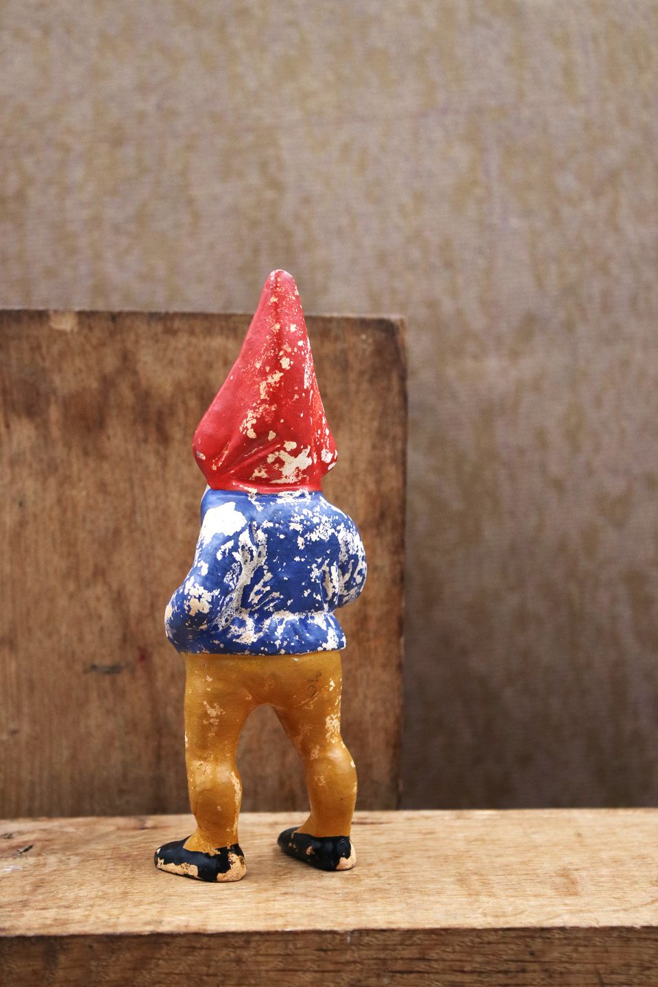 Dekorativ gammel bemalet terrakotta julenisse med fin patina.