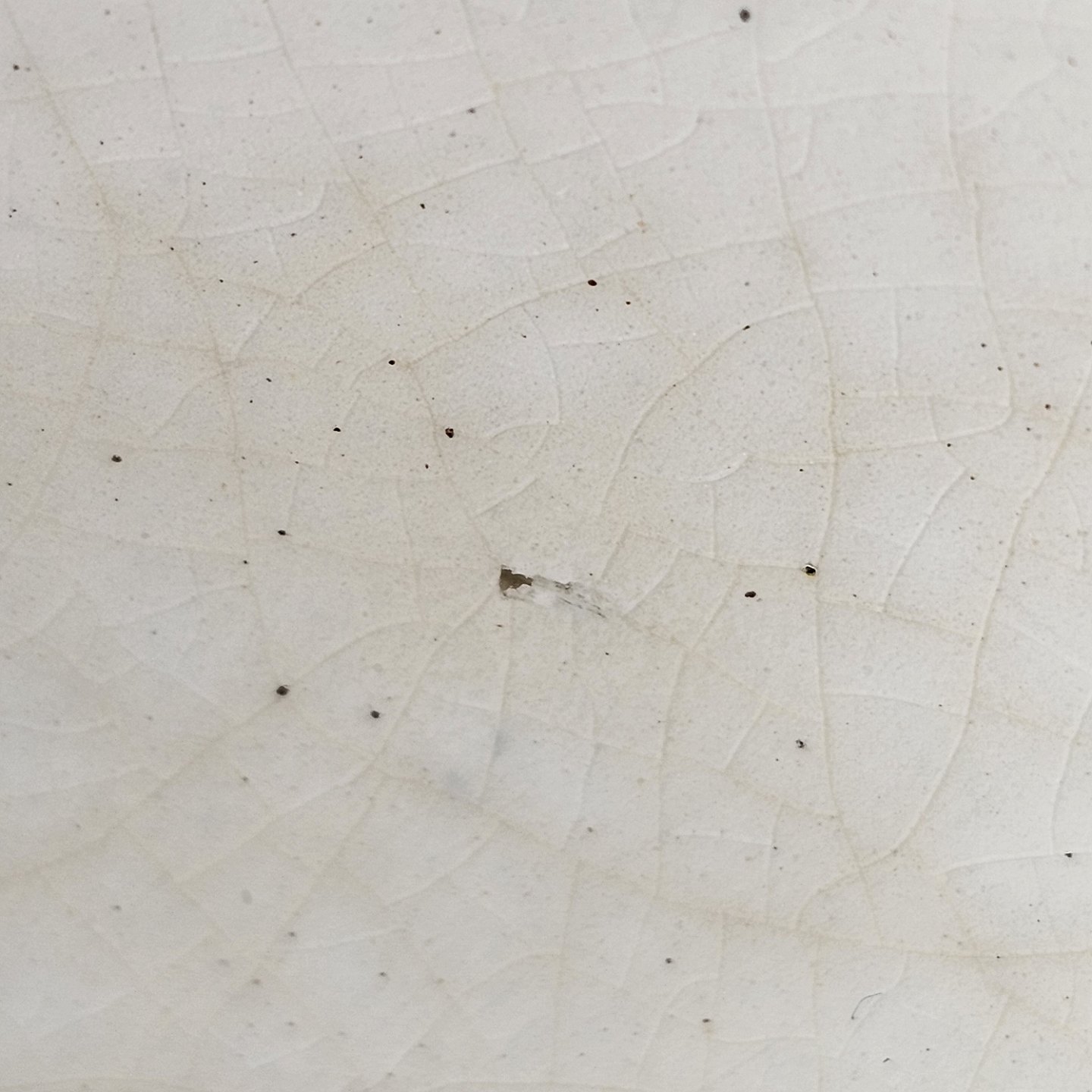 Stel i glat hvid fajance med dekoration af blå blomster og flettet kant