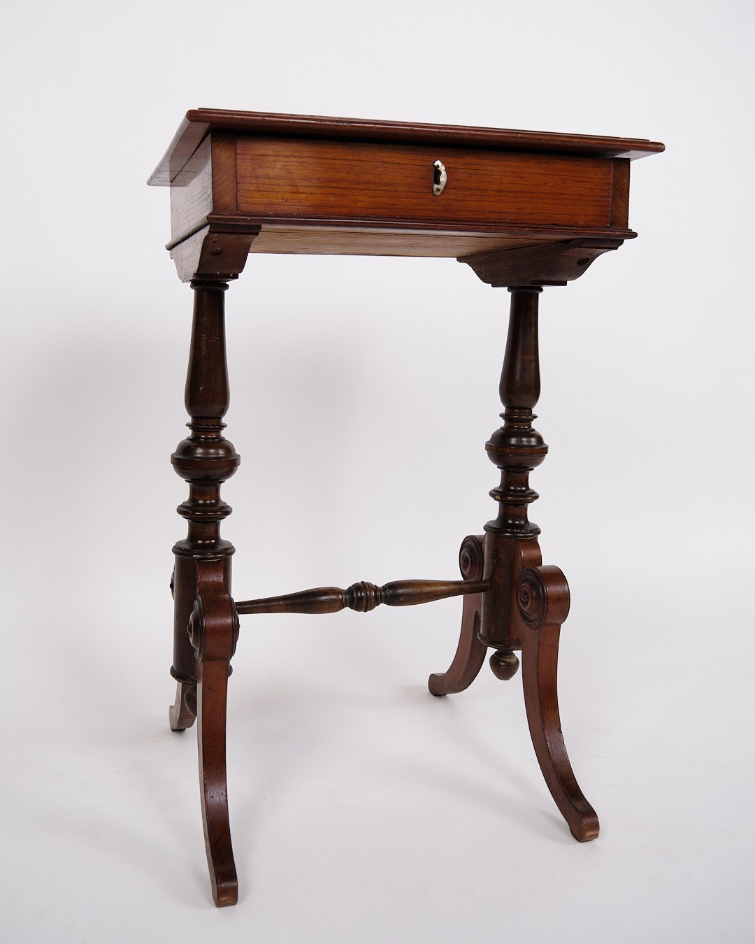 Antikt Sidebord Med Skuffe - Håndpoleret Mahogni - Drejede Ben - År 1880erne