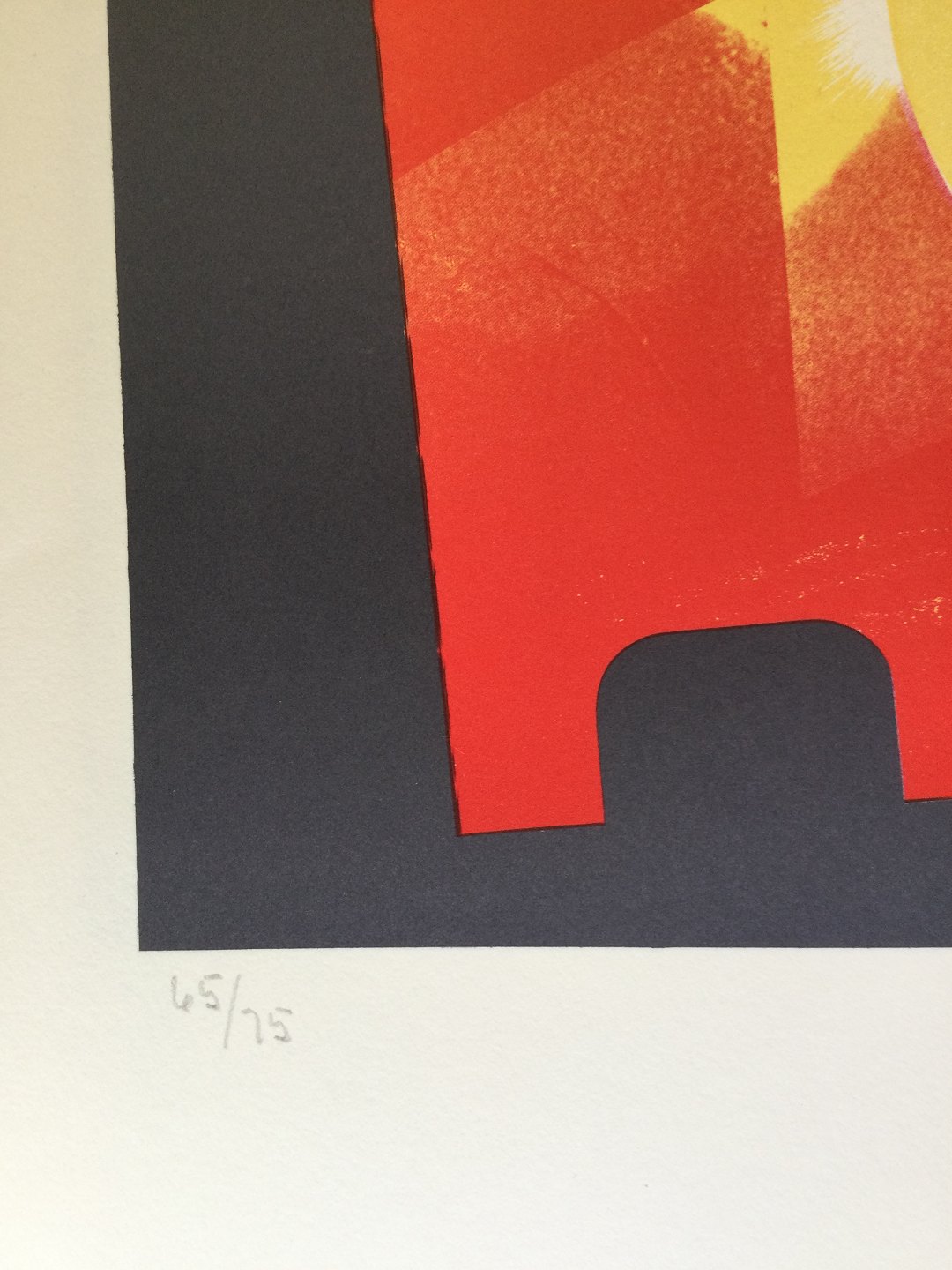 Farvelitografi af Finn Lohmann - Komposition 1976.