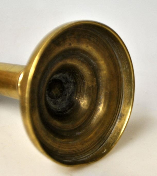 Antik dansk empire messingstage, ca. 1820. Rund fod og glat stamme. H.: 15 cm.