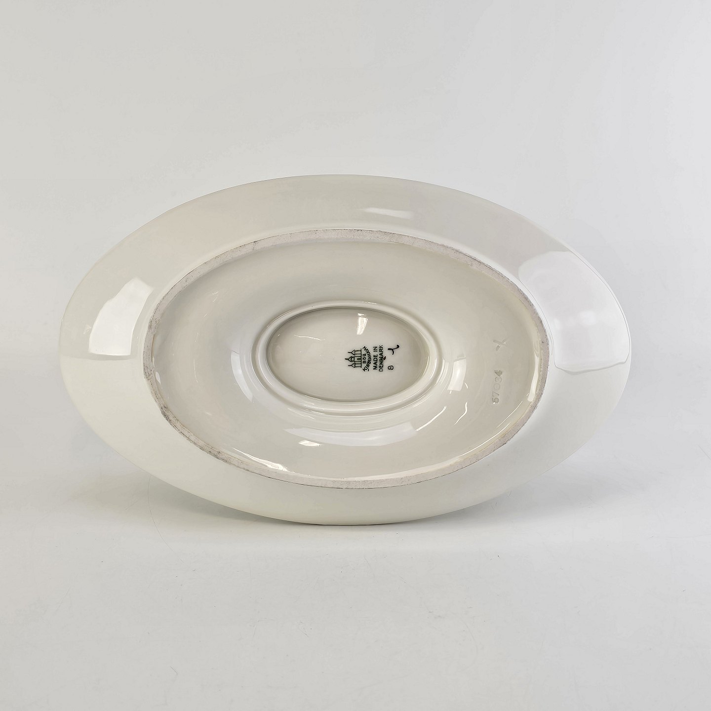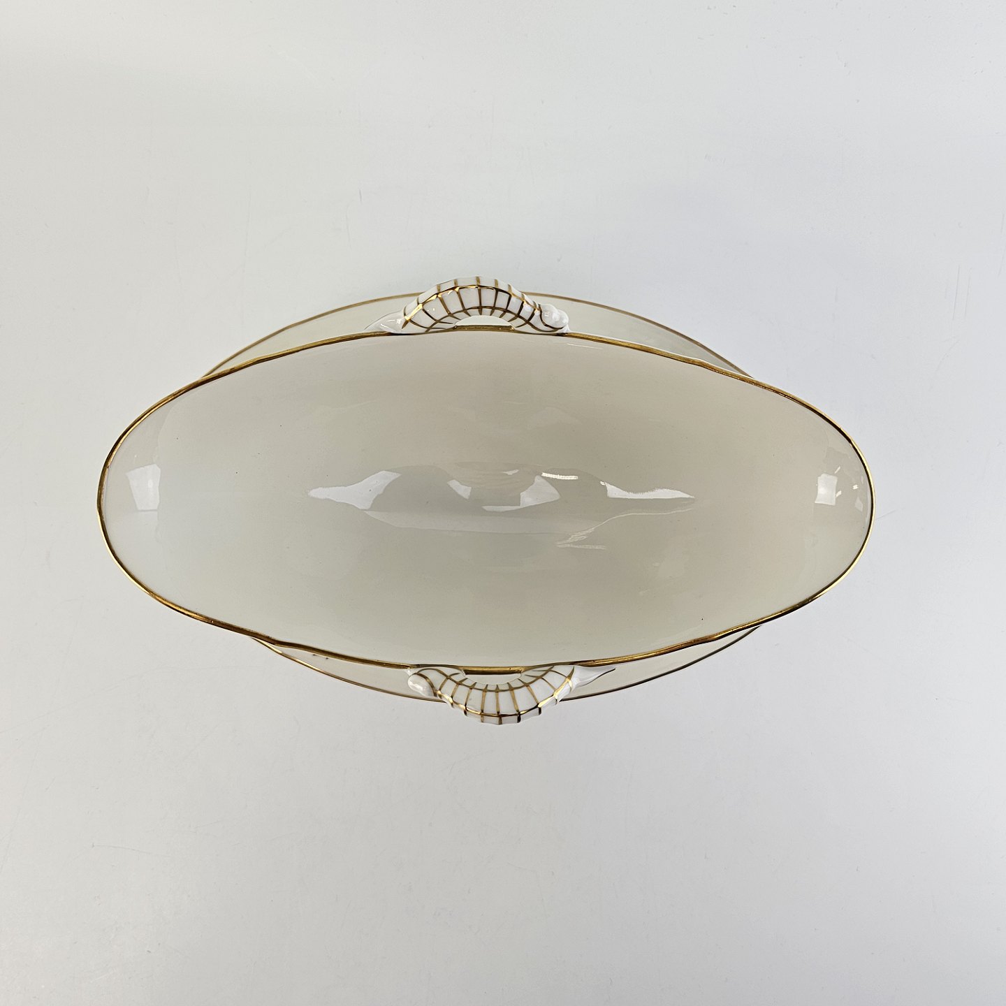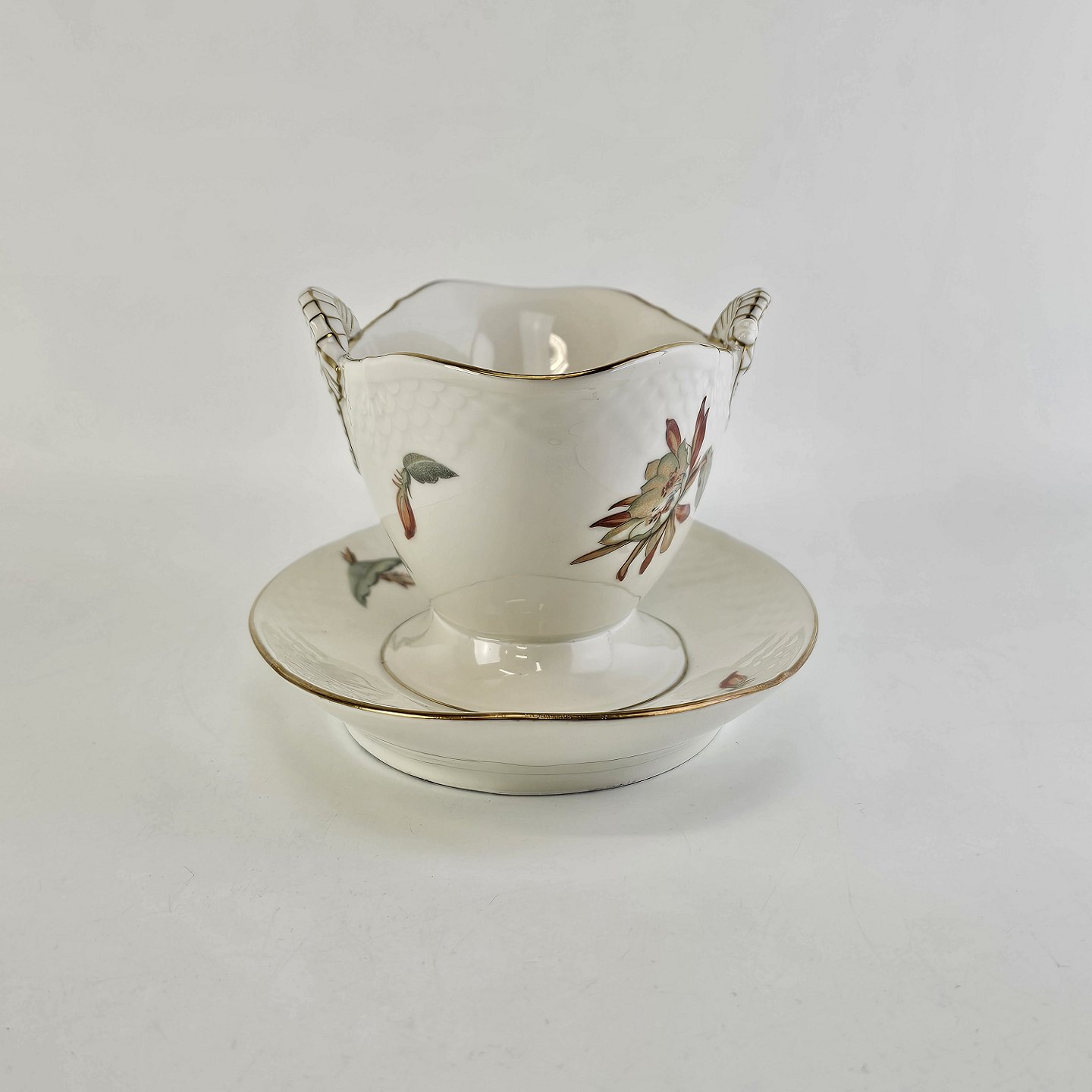 Kaktus er cremefarvet porcelæn i skælform, dekoreret med kaktusblomster og guldkant