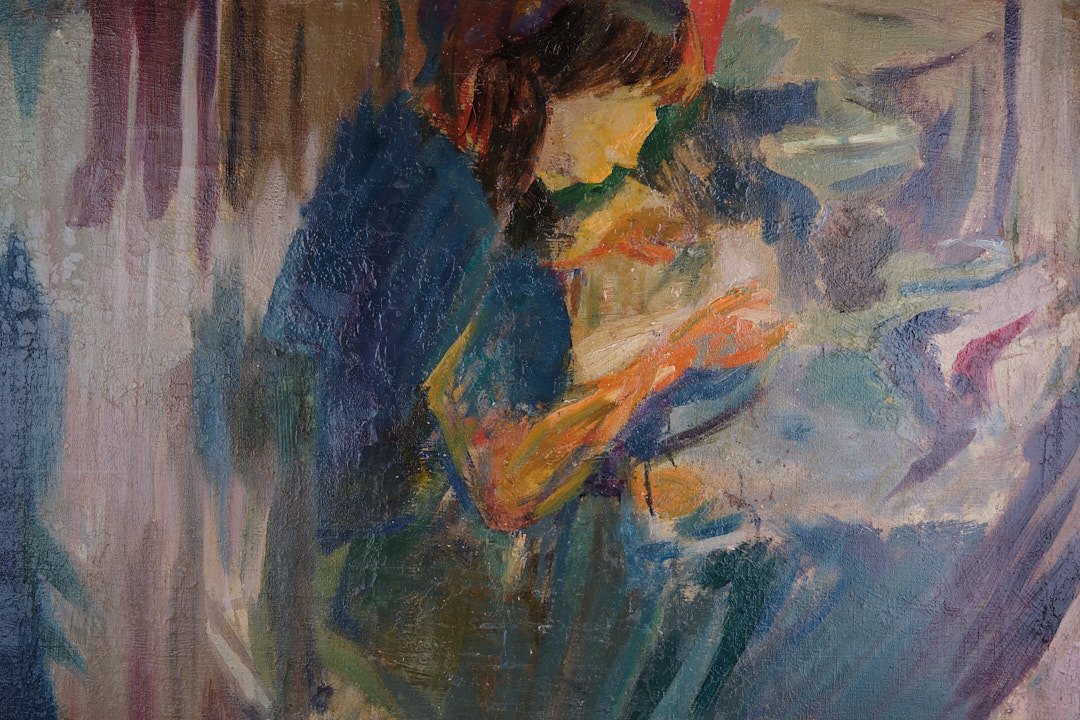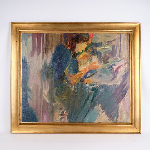 Abstrakt oliemaleri af kvinde fra 1930’erne. Olie på lærred med guldramme.