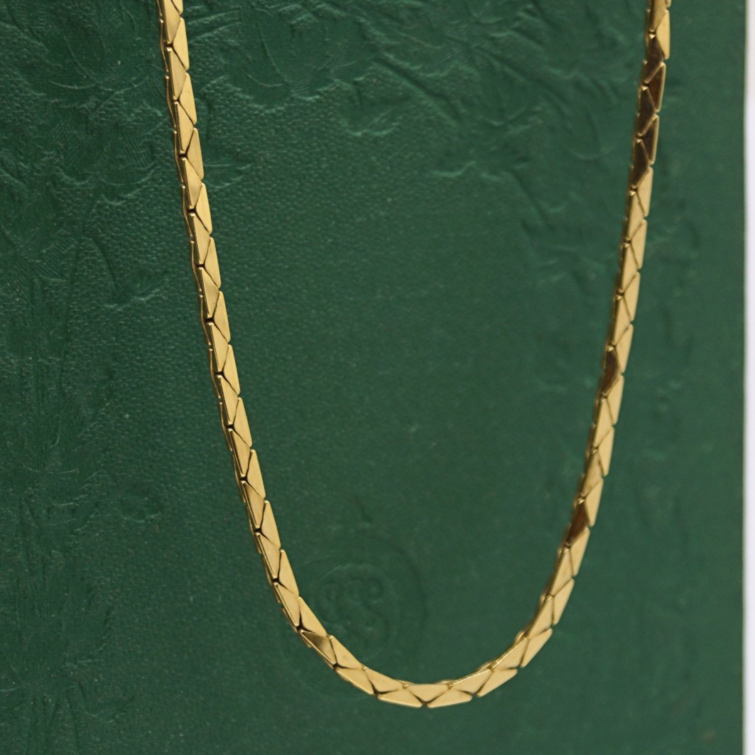 Halskæde i 8 kt. guld. Sammensat af små trekantet led.