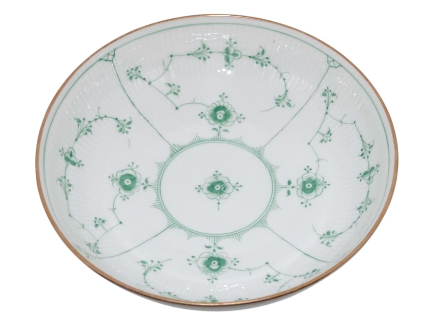 Royal Copenhagen Grøn Musselmalet Halvblonde med guldkant, rund skål.