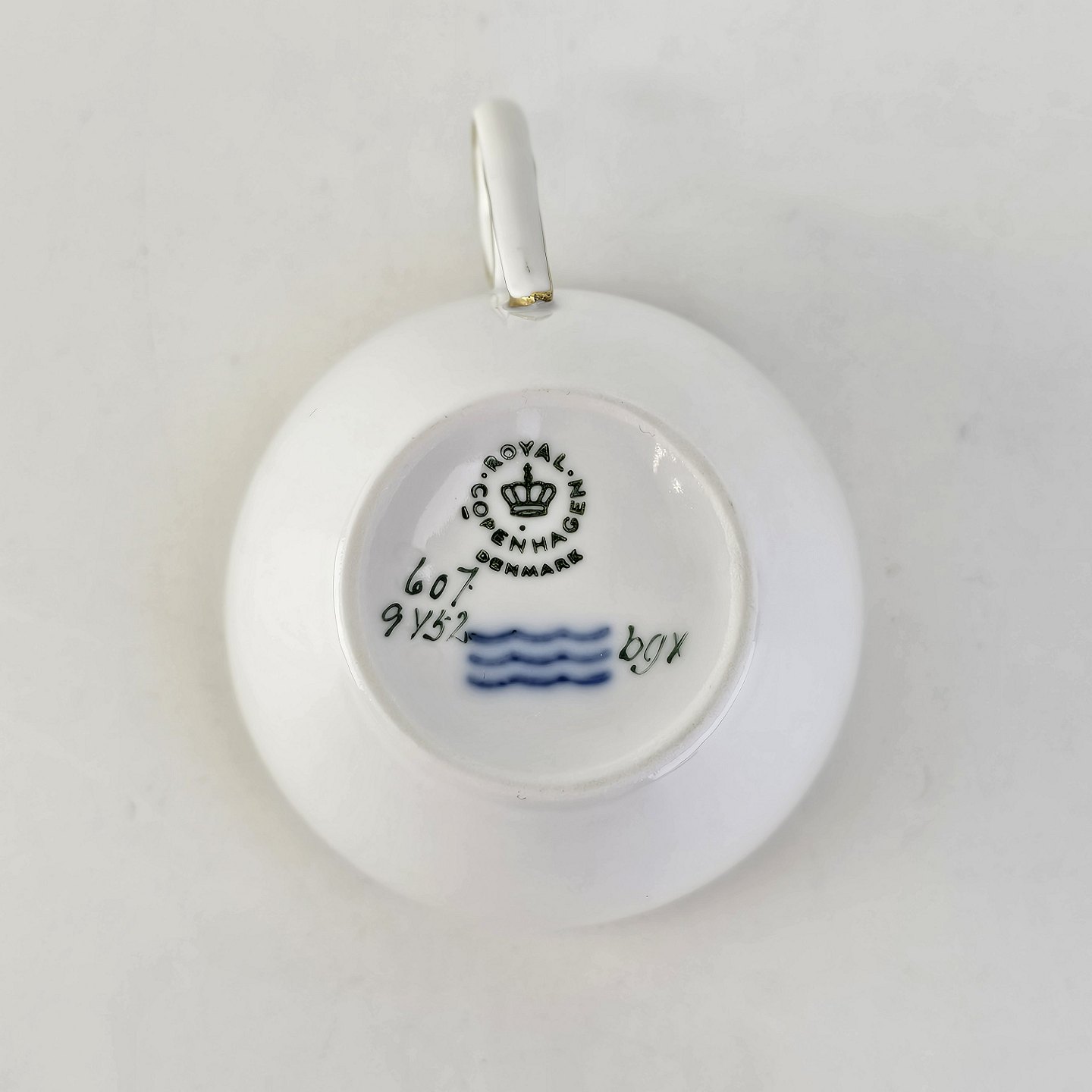 Kop med underkop i kongeligt porcelæn fra stel nr. 607