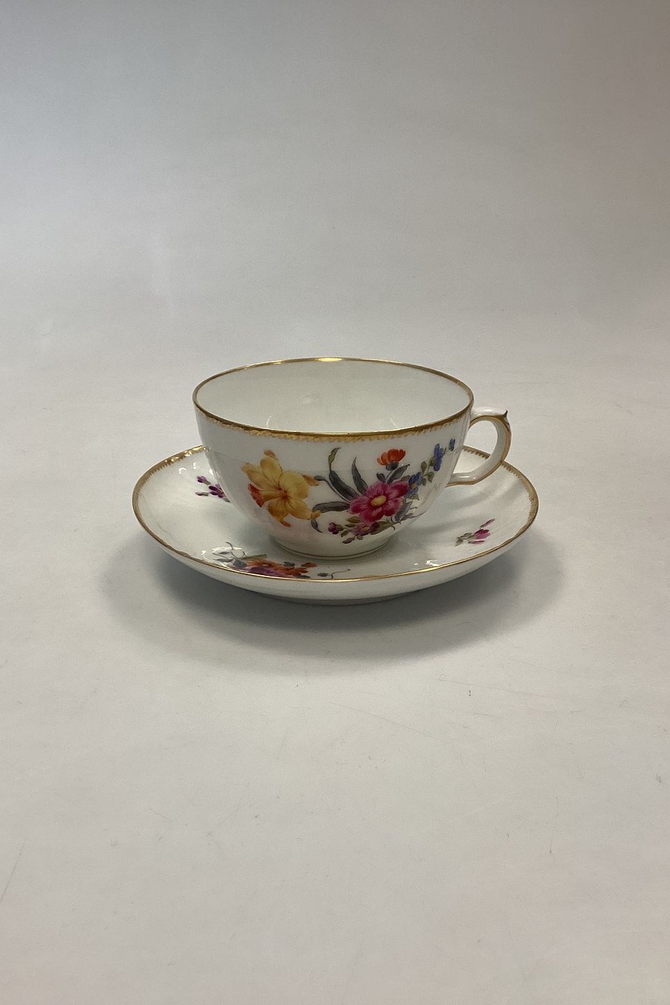 Royal Copenhagen Fuld Saksisk Blomst Stor Tekop No 1550. I fin stand, men lettere slid på guldkanten.