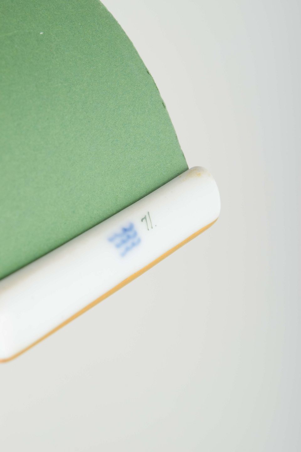 Royal Copenhagen blev grundlagt i 1775 under beskyttelse af Dronning Juliane Marie og er kendt for sine håndmalede porcelænsserier. “Sachsisk Blomst” blev introduceret i slutningen af 1700-tallet, inspireret af samtidens botaniske stik. Serien forblev populær gennem 1800- og 1900-tallet, og unikke genstande som skrivebordstilbehør hører til de mere sjældne og eftertragtede samlerobjekter.