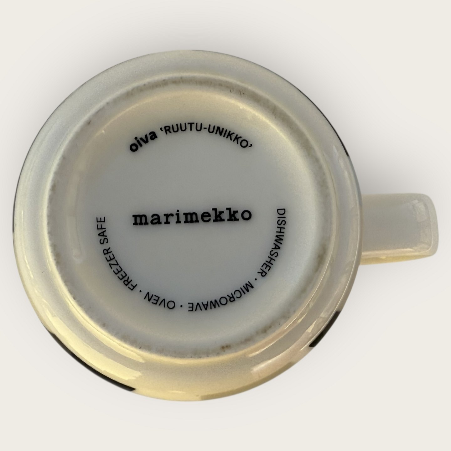 Marimekko krus med striber, Oiva Ruutu-Unikko, Højde 9,5cm, diameter 8cm *perfekt stand*