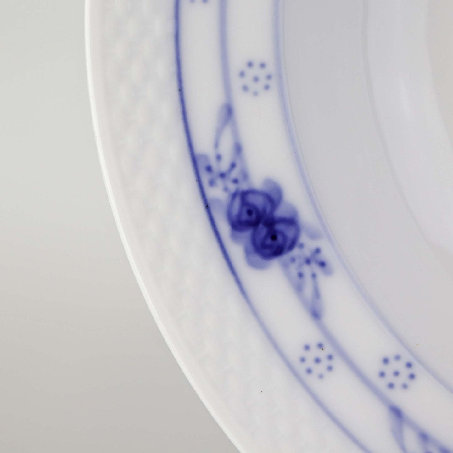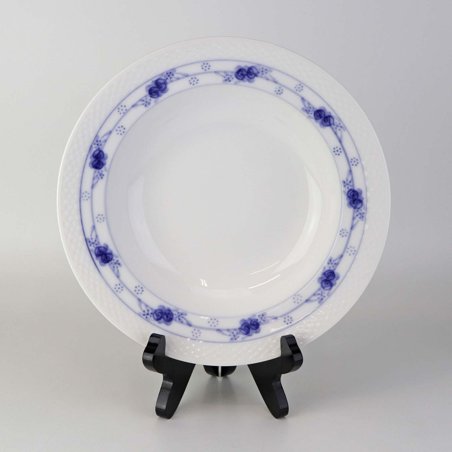 Dyb tallerken i kongeligt porcelæn fra stellet Rosenknop. Nr. 408/8106