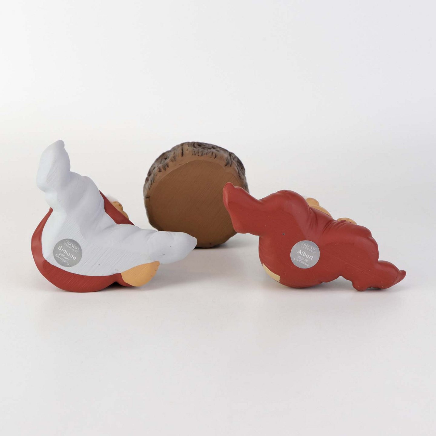 Figursæt med motiv af nisserne Simone og Albert med tilhørende fyrfadsstage fra serien Klarborg jul år 2021. Figurene kommer med original boks.