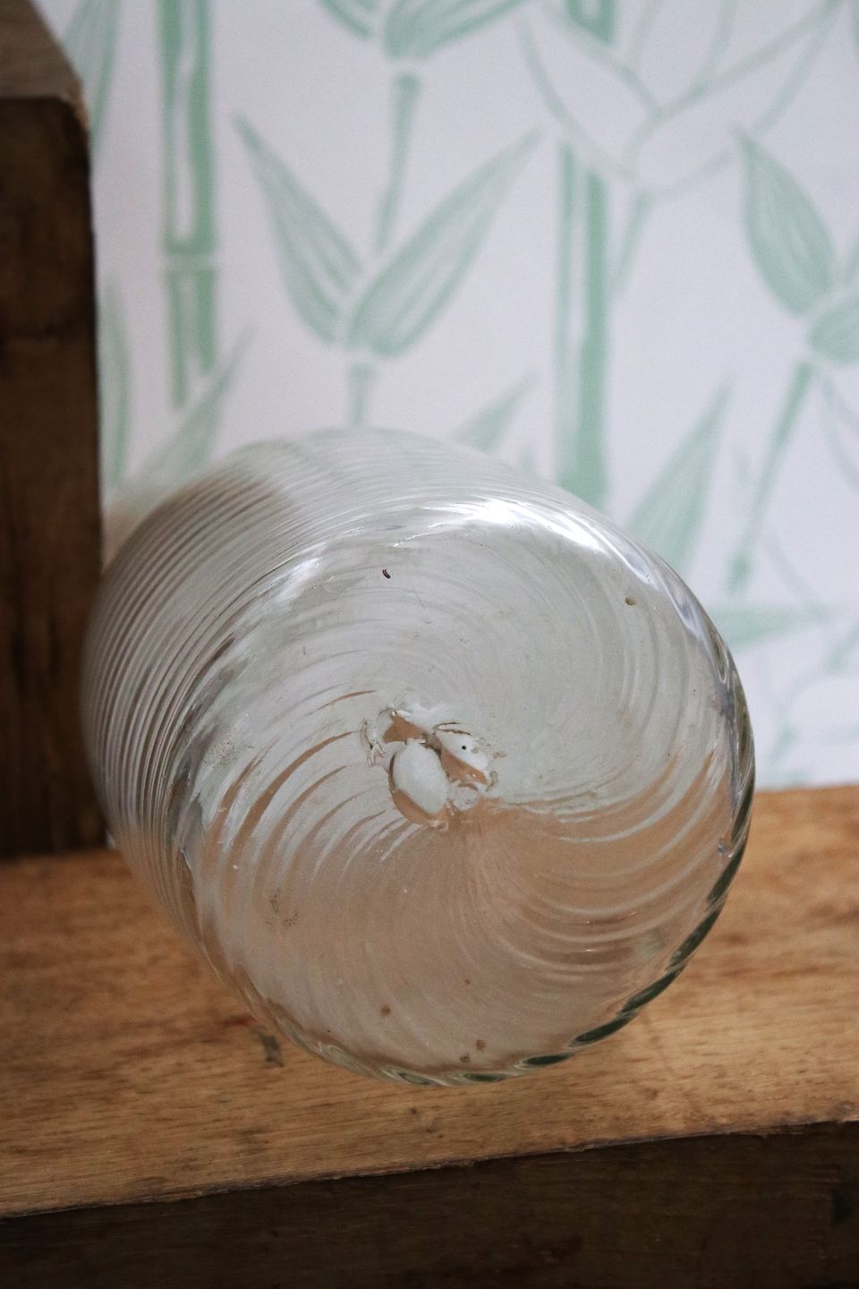 Antik , svensk karaffel i snoet mundblæst glas...