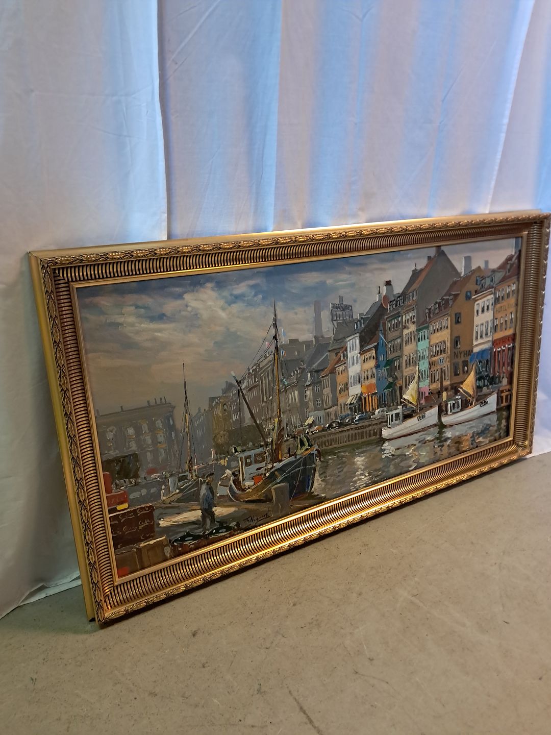 Maleri af Nyhavn i guldmalet ramme, af : Th. Nygaard