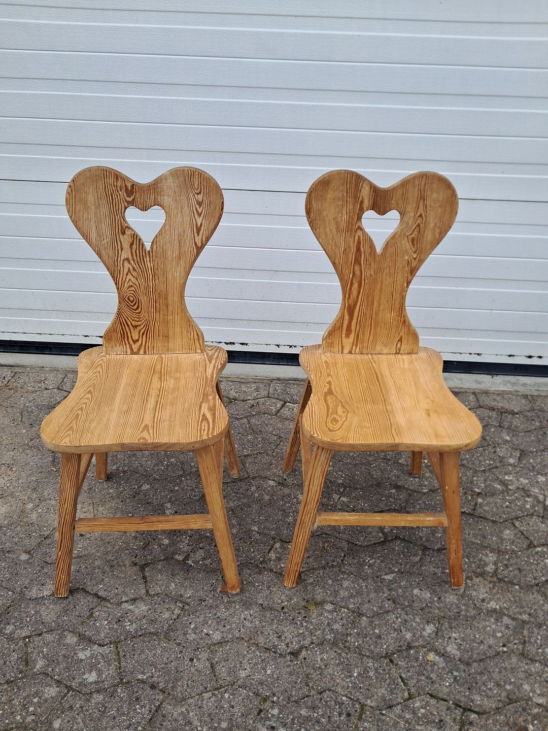 2 Stole i massivt fyrretræ, fra 1980erne.