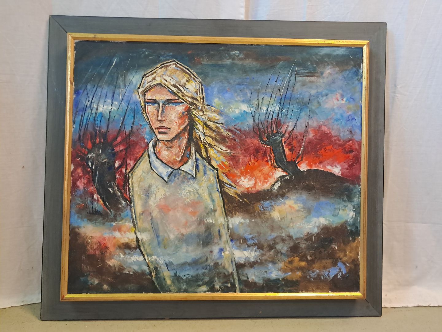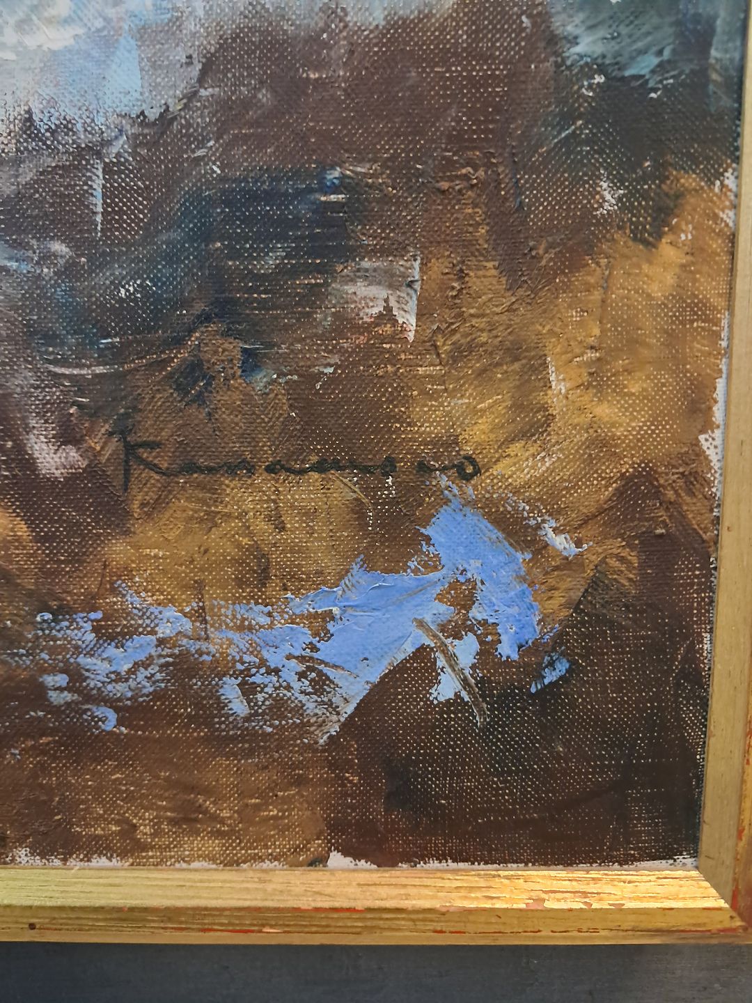 Maleri i ramme af fyrretræ, fra 1970erne.
