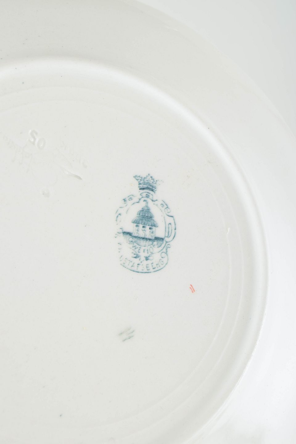 Gustavsberg, grundlagt i 1825 nær Stockholm, var en af Sveriges førende porcelæns- og fajancefabrikker gennem 1800- og 1900-tallet. Serien “Wexiö” blev produceret omkring år 1900 og afspejler tidens interesse for naturmotiver og dekorative overførselstryk i afdæmpede farver.
