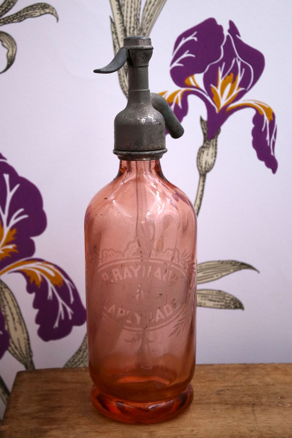 Dekorativ , sjælden fransk mini glas sifon fra begyndelsen af 1900 tallet i rosa farvet glas...