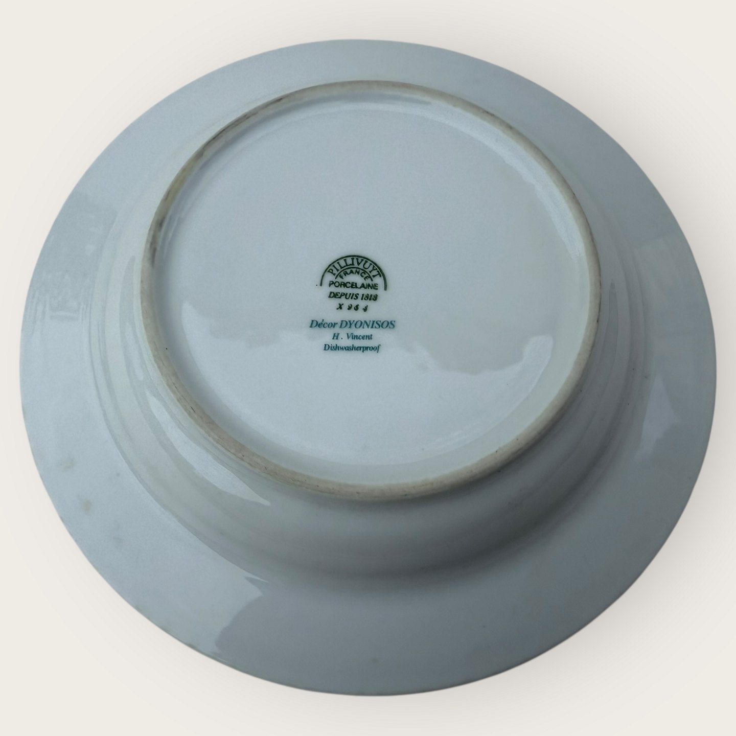 Pillivuyt, Decor Dyonisos, Dyb tallerken, 22cm i diameter *Brugt stand*